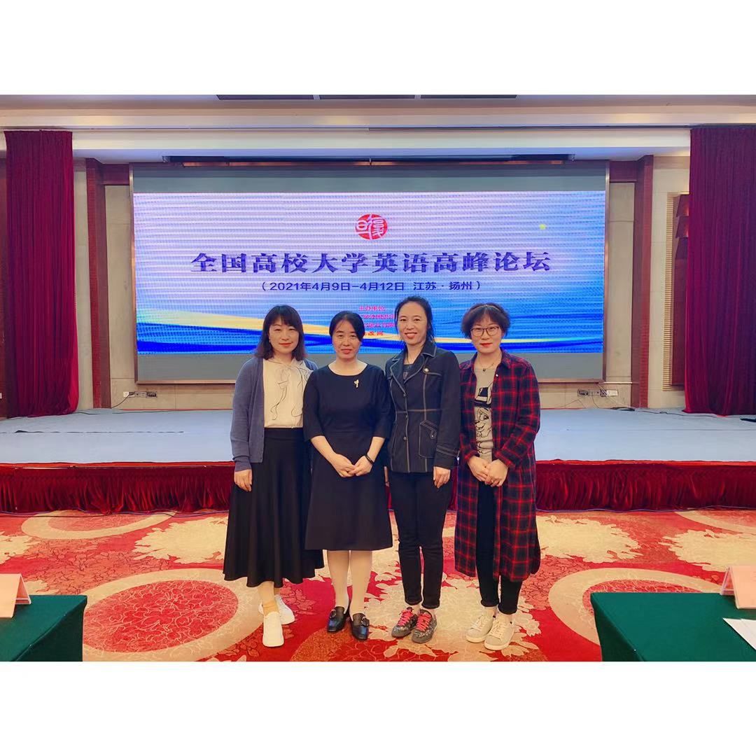 2021年4月9日至4月12日,“2021年全国高校大学英语高峰论坛”在江苏扬州召开,koko体育koko体育官网大学英语课程思政特色教材建设团队应邀参加。koko体育官网院长池丽霞教授在会议上作题为“从主题到视听说的多模态思政阅读教材建设”的主题发言。