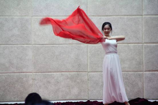 文艺展演在歌曲联唱中拉开序幕,《万泉河水》《万疆》《天耀中华》《不忘初心》,悠扬的歌声带我们走过党的百年征程,感受中国共产党的砥砺探索,品味中国共产党的勇敢顽强,不禁感慨“生在华夏,何其有幸”。颂词献给党,筑梦新征程,《读中国》《七月的天空》《红船,从南湖起航》,饱含深情的朗诵,或抑扬顿挫,或铿锵有力,字字句句无不令观众动容。舞蹈《红纱之梦》带我们走进峥嵘岁月,向老一辈的芳华青春致敬。“有人挺身而出,有人逆流而上”,情景剧别出心裁,以瘟神人间游为切入点,讲述抗议故事,致敬伟大的抗疫英雄和坚强的中国人民,笑点与泪点共存,诙谐风趣又发人深省。演讲《初心不变忆昔日党史,外语青年书时代新篇》诉说对党的深情的同时,更是抒发了新时代外语人的使命和担当,用外语讲述中国故事,向世界传递中国声音,每一个外院学子无不深受鼓舞。伴随悠扬悦耳的琴音,一首中提琴独奏《我爱你中国》缓缓流入观众耳中,琴声婉转,把华夏儿女眷恋祖国的无限深情抒发的淋漓尽致。大合唱《我和我的祖国》则是将全场气氛推至最高点,所有观众挥舞着国旗和党旗齐声同唱,全场变成了红色的海洋。