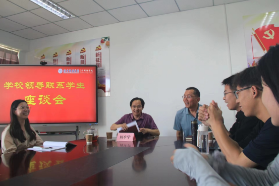 6月15日下午,联合党委常委何本华与所联系班级221011班全体学生开展座谈交流。座谈会由koko体育官网党总支书记王建富主持。