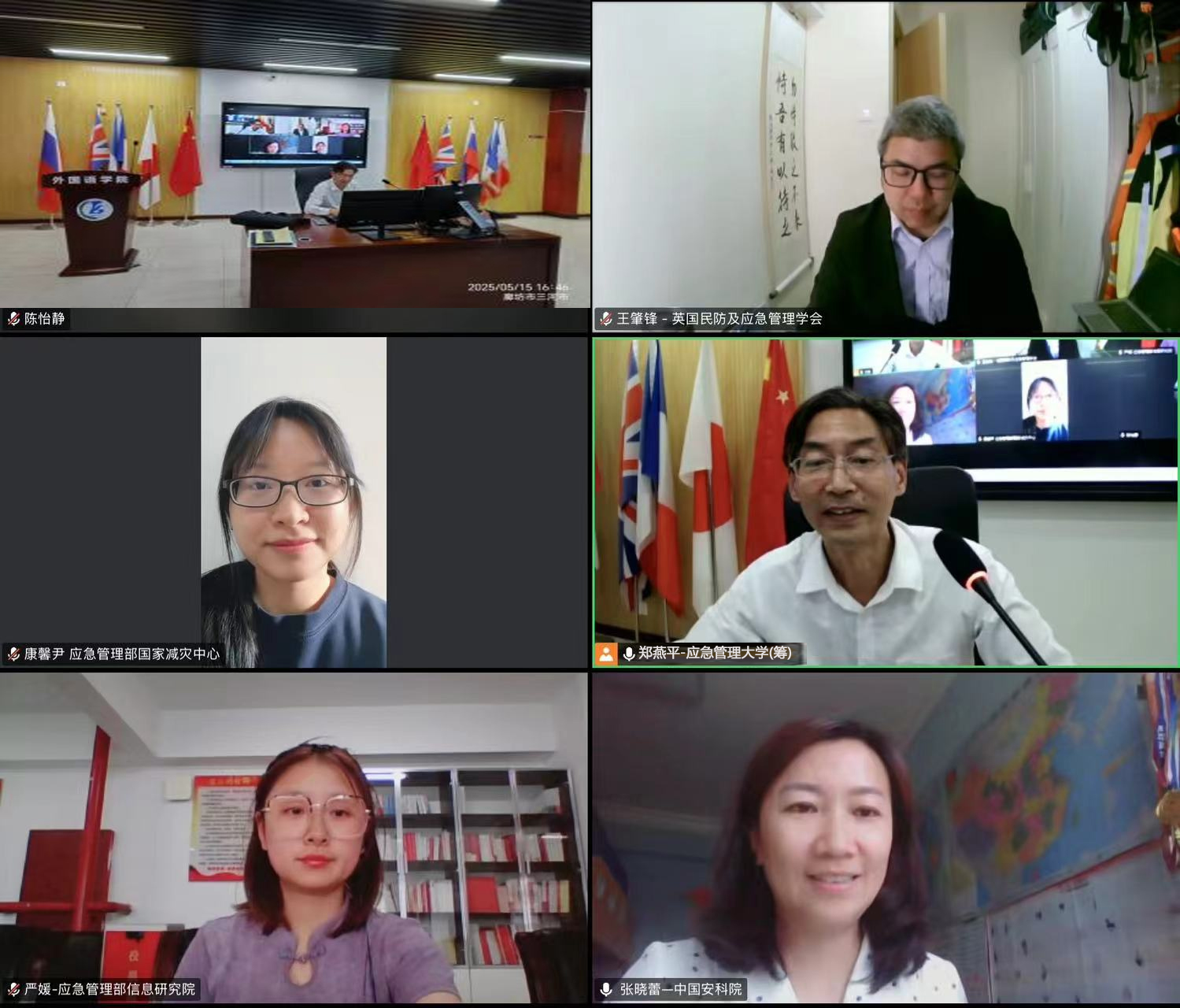 5月15日下午,应急管理部国家减灾中心国际合作部一级翻译康馨尹,中国安全生产科学研究院新业态安全研究所高级工程师、注册安全工程师、高级合规师张晓蕾,应急管理部信息研究院工程师严媛、英国民防与应急管理学会王肇锋等专家学者,应邀参加koko体育koko体育官网举办的应急管理外语人才培养研讨会。会议由学院副院长郑燕平教授主持,学院领导、专业负责人、英语和日语专业教师共计30多人参加会议。