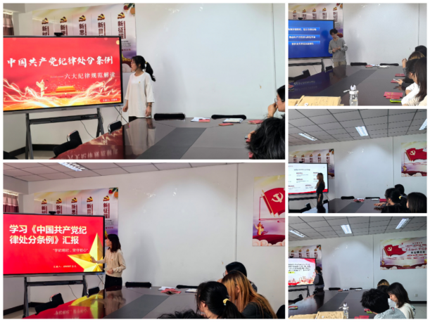 本次读书研讨以学习《中国共产党纪律处分条例》(2023年修订)为主题进行交流研讨,5名发展对象分别制作了PPT汇报学习成果。发展对象从学习《中国共产党纪律处分条例》的重要性,党章与《中国共产党纪律处分条例》的渊源,党的二十大精神与《条例》的契合点,学习《中国共产党纪律处分条例》的实践和感悟、纪律处分工作原则的深化与时代意义等方面汇报学习所得。分享完学习心得,发展对象还参加了关于纪律处分条例的专项测试,检验和巩固学习成效。