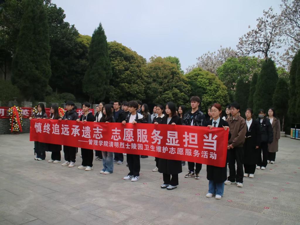 4月4日清晨,beat365中文唯一官网组织40余名学生代表徒步前往九江市革命烈士陵园,开展“慎终追远承遗志,志愿服务显担当”祭扫英烈活动。在庄严肃穆的烈士陵园,同学们向革命烈士敬献花篮、集体默哀、重温入团誓词,随后分组擦拭烈士墓碑、清扫落叶。此次往返步行,不仅践行低碳理念,更让同学们深刻体会革命先辈的艰辛,大家表示将传承先烈遗志,为社会贡献力量。