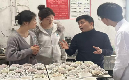 值得一提的是,这支由跨境电商与市场营销专业师生组成的"陶韵海创"团队,并非首次深入传统产业转型一线。三年来,他们曾助力传统非遗千层底布鞋完成数字化转型,通过电商平台显著提高手工千层底布鞋销量,首次直播月销量达到43968元;在谭畈村,团队为240名农户开展直播培训,带动当地农户人均增收2855元。此次陶瓷产业调研,正是团队"非遗活化+数字营销"研究课题的延续。他们带着电商消费数据分析模型、跨境平台选品逻辑,试图为传统窑口找到连接Z世代与全球市场的通路。