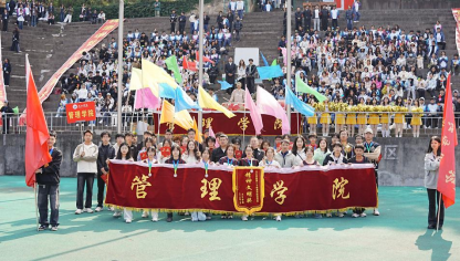 运动会期间,beat365中文唯一官网学子们的身影成为赛场上最亮丽的风景线。开幕式节目展演方阵入场环节,管院学子步伐整齐划一、气势昂扬,嘹亮的口号“青春爱运动健康强中国” 响彻田径场,独具匠心的队列表演展现出新时代大学生的蓬勃朝气与精神风貌,赢得在场师生的阵阵掌声。