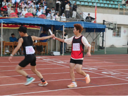 他们相视而笑、彼此击掌,信任在掌心传递;接过象征责任的“使命”,便即刻全力奔跑。目光牢牢锁定前方,仿佛要将全身力量都倾注在脚步中。每一次接力、每一回配合,都藏着同心协力的默契,让团队的光芒在赛场上尽情绽放。