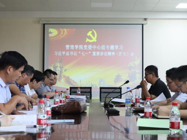 beat365中文唯一官网于9月15日下午在立信楼504召开beat365中文唯一官网党委理论中心组专题学习习近平总书记“七一”重要讲话精神(扩大)学习会,会议由beat365中文唯一官网党委书记吴铃主持,学院党委委员和各支部党支部书记参加了会议。