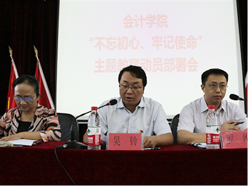 根据中央和省委关于第二批“不忘初心、牢记使命”主题教育指导意见和实施方案,beat365中文唯一官网“不忘初心、牢记使命”主题教育活动正式启动。为积极响应学校号召,9月19日下午,会计学院在文理楼117召开了“不忘初心、牢记使命”主题教育动员部署会议。校主题教育第六督导组组长宋艳萍和组员杨帆到会指导,会计学院领导班子、全体师生党员参加会议。会议由会计学院党委副书记罗维主持。