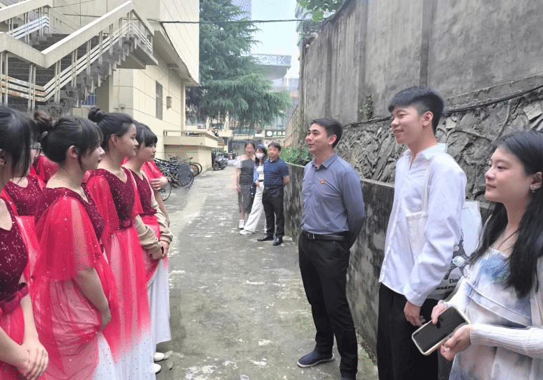 比赛期间,学院领导高度重视,在赛事前期队伍组建、服装道具准备、日常训练期间,多次给予物质支持和精神鼓励,学院党委书记赵宇剑、党委副书记周梓哲在赛前还莅临现场慰问师生,向同学们送上学院关怀,鼓励大家以饱满热情、良好精神风貌投入比赛,发挥最佳水平,叮嘱同学们注意入场、退场进行中的安全。