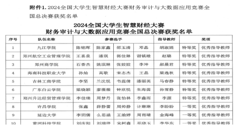 随后,由陈家鑫、陈铭晖、邵玉清、邓晶四位同学又在12月19日的中国商业会计学会主办的2024年全国大学生智慧财经大赛财务审计与大数据应用赛项全国总决赛中表现突出,以全国第一名的优异成绩荣获特等奖,为我校摘得桂冠。