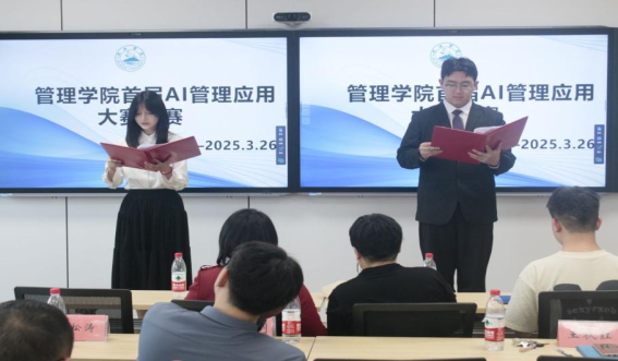 许松涛院长在赛后点评中指出:“AI管理应用作为极具变革性的技术,其应用前景将深刻影响社会各领域。本次大赛高度契合数字化时代发展需求,有效引导师生在参赛过程中激发对人工智能前沿技术的认知,全方位提升师生AI管理应用能力。从同学们的方案中,欣喜地看到大家敏锐捕捉到了AI在管理领域的多元可能性,无论是优化流程、提升效率,还是挖掘潜在数据价值,都做出了有益尝试。获奖的这6支队伍,凭借独特视角和扎实实践脱颖而出。下一步,学院将持续搭建创新平台,为同学们提供更多资源与支持,助力大家将创意转化为推动社会进步的实际动力。