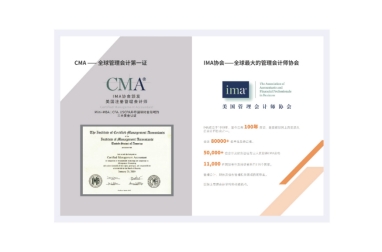 CMA是国际注册管理会计师(Certified Management Accountant)的简称,是国际通行的财务管理者专业资格认证,是全球管理会计及财务管理领域的最权威、最顶级的认证,也是目前全球公认的年薪最高的财经证书之一,平均年薪可达15.5万美金。