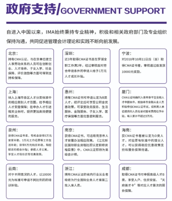 2010年,中国银行四川省分行发布了《员工业余进修管理办法》的通知,积极支持员工考取CMA认证。根据通知规定,凡是符合条件并通过所有考试并获得CMA认证的员工可以获得8000元的现金奖励,并拥有获得优先晋升的机会。