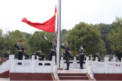 血荐轩辕心,缱绻爱国情。沐浴晨曦,向阳而行,同学们准时到达升旗点,共赴一场与国旗之间的约定,国旗班成员迈着整齐有力的步伐,英姿飒爽地向升旗台走去,全场肃立,升旗仪正式开始,升国旗,奏国歌,行注目礼。红日初升,火红的旗面迎风招展,象征着新的梦想与希望。