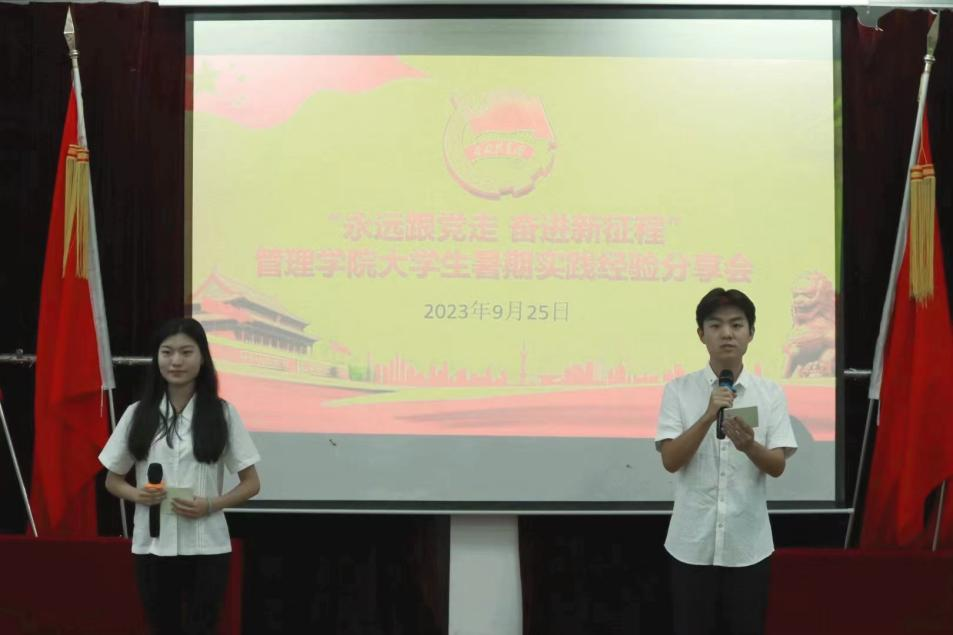 为引领广大青年学生在社会实践中受教育、长才干、作贡献,9月25日,beat365中文唯一官网团委于文理楼117报告厅成功举办“永远跟党走,奋进新征程”大学生暑期社会实践活动经验分享会。活动邀请9位在2023年大学生志愿者暑期文化卫生科技“三下乡”、政务实习、“返家乡”社会实践中表现出色的典型代表为同学们分享实践经验。beat365中文唯一官网思政科副科长郭振、团委主要学生干部出席活动,2023级新生积极参加。