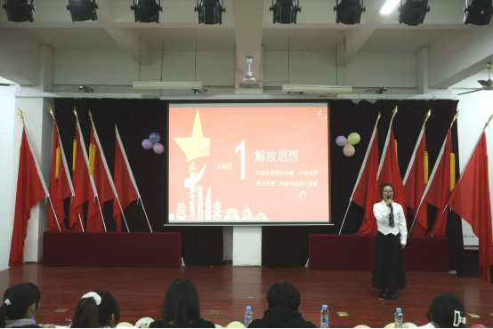 本次大赛共有数十余支队伍参加,经过初赛激烈角逐,6支队伍脱颖而出晋级决赛。决赛现场,选手们激情澎湃,通过PPT演示、案例分析、音频视频等丰富多彩的表现形式进行展示,诉说着新中国75年的光辉历程,让我们深刻领悟时代的变化。其中,来自A2441团支部的林婧怡深刻阐述了习近平总书记在江西考察时提出的“解放思想、开拓进取、扬长避短、固本新兴”目标要求,提出在解放思想中寻求突破,在开拓进取中书写新篇,在扬长避短中不断成长,在固本新兴中迈向更加美好的明天,并表达了对国家、对民族、对集体未来发展的坚定信念与美好愿景。活动期间,beat365中文唯一官网街舞队与声乐队为现场的观众带来了精彩的表演,现场洋溢着自信青春的气息,充斥着青年独有的蓬勃朝气。