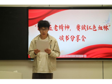 在读书分享环节,多位学生代表结合《读懂中国》微视频和《beat365中文唯一官网2024年度“读懂中国”活动优秀征文集》中的五老人物感人事迹,畅谈对五老精神的理解。工商管理A2442班卢欣荣深入解析五老群体在政治引领、经验传承、威望凝聚三方面的时代价值,强调青年一代应从历史中汲取奋进力量。市场营销A2452班陈文涛呼吁青年在传承红色基因的基础上勇于创新发展,以开拓精神续写时代篇章。审计学A2432班郭建宇讲述了青年如何通过基层实践锤炼本领,将个人理想融入强国伟业。审计学A2431班周斯婷分享了学习五老精神对个人人生选择的指引意义,倡导以奉献姿态践行“强国有我”使命。学生们的精彩发言引发全场共鸣,现场掌声此起彼伏。