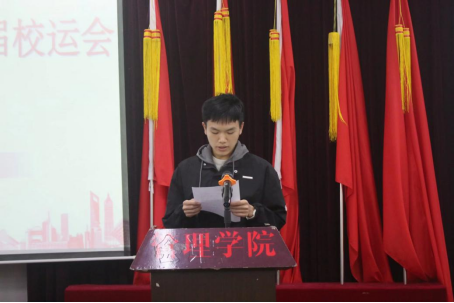 大会在团歌声中正式拉开帷幕。男子1500米项目破纪录者、跨境电子商务专业A2461班温天佑作获奖运动员代表发言,他回顾了备赛参赛的艰辛与收获,真挚感谢学院领导、老师的悉心指导以及后勤工作人员的默默付出,并表示会将赛场上永不言弃的精神延续到未来的学习与生活中。