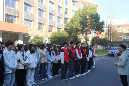 随后开展的应急疏散演练环节,现场气氛紧张有序。在老师的有序引导下,参加培训的学生严格按照预定疏散路线,迅速向指定安全区域集结。整个疏散过程组织严密、行动高效,仅用5 分钟便完成全体人员安全集结,顺利达成演练目标。周梓哲对本次活动进行了总结,他指出此次演练既有效检验了学院应急预案的科学性与可行性,也进一步提升了师生在紧急情况下的应急反应和协同配合能力。