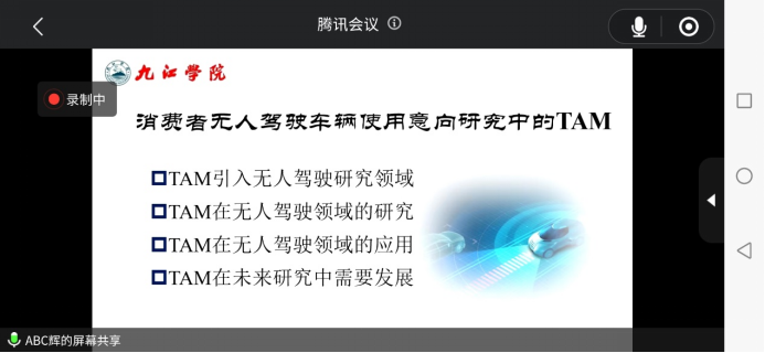 TAM理论方面,姚博士从TAM理论分享框架讲起,主要介绍了TAM的研究背景、TAM的三个发展阶段、TAM的评价争议、TAM的研究应用领域。TAM应用方面,他以“消费者无人驾驶车辆使用意向研究中的TAM”为例,讲解了TAM是如何引入无人驾驶研究领域,TAM在无人驾驶领域的研究方法,TAM在无人驾驶领域的具体应用,以及TAM在未来研究中进一步发展的方向。