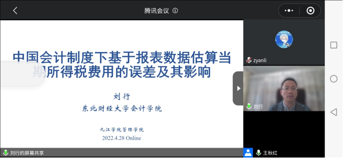 2022年4月28日下午,刘行博士通过线上腾讯会议,为老师们作了主题为《中国会计制度下基于报表数据估算当期所得税费用的误差及其影响》的学术报告。刘博士以论文的研究动机为切入点,与老师们分享了其论文的整个写作思路与历程,并针对论文的各个重要部分进行了展示和解读。包括已有文献、研究问题、研究设计、样本与数据、描述性统计、稳健性测试、研究结论以及贡献与启示等几个方面,最终得出“在开展所得税相关研究时,如果需要用到所得税费用信息,需要注意可能的估计误差,尤其是研究的话题与所得税费用估计误差的形式原因相关时”的启示。刘行教授详细的讲解让我们对论文写作有了更深刻的认识,为大家今后的学术研究提供了新的研究思路和启示。
